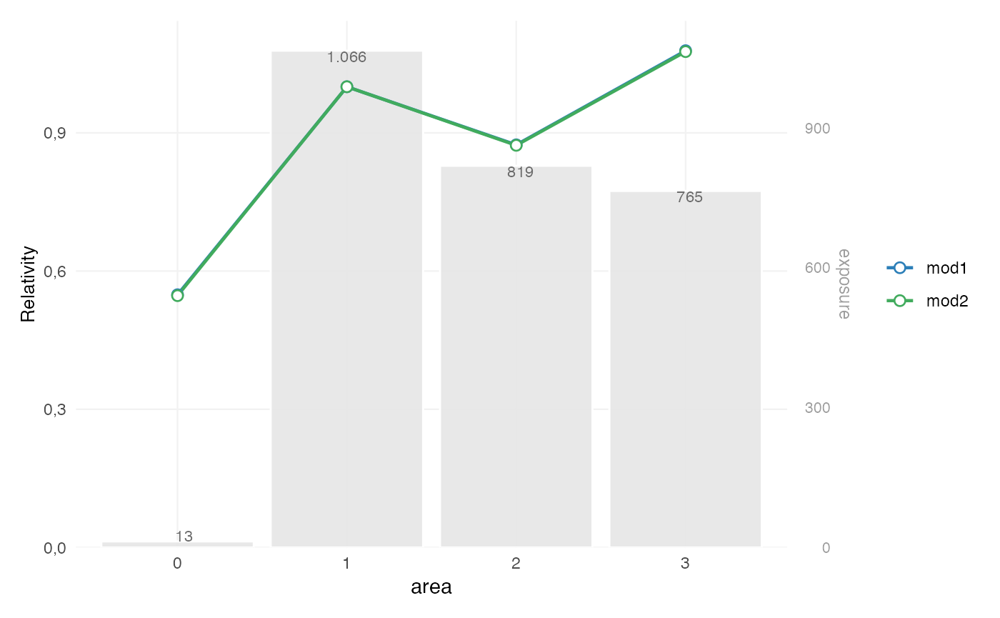 rating_table(mod1, mod2, model_data = df, exposure = "exposure") |>
